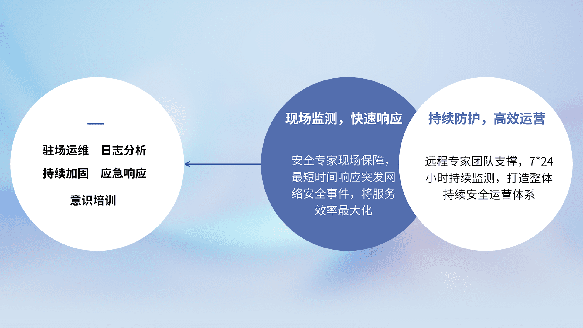 7X24小时持续监测安全事件,保持安全策略有效性,降低资产脆弱性风险,,精准拦截黑客攻击,,减少被黑客利用的机会,,,,第一时间遏制,,,,降低损失。。。